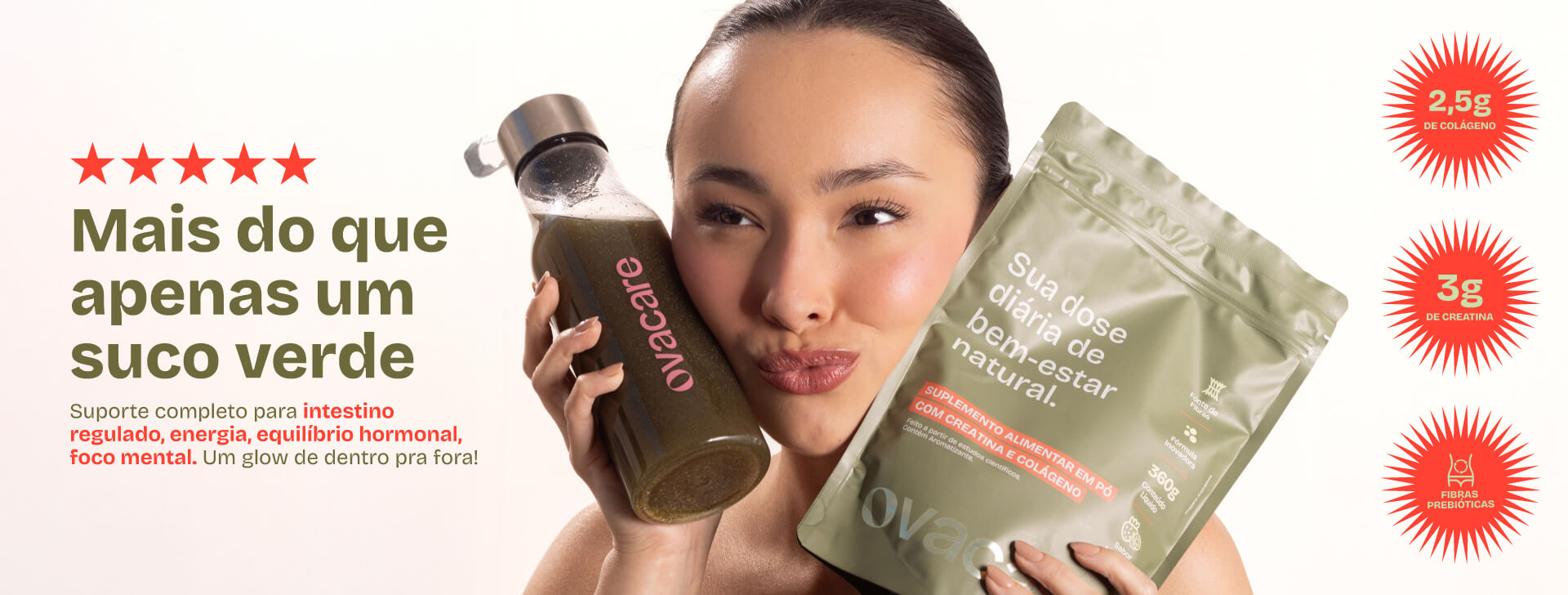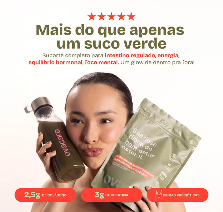 A linha Ovacare combina ingredientes naturais com respaldo científico para promover saúde, equilíbrio e bem-estar feminino. Enquanto o Ovacare atua diretamente nos sintomas da SOP, endometriose e TPM com compostos como mio-inositol e magnésio, o Ovacare Greens oferece suporte diário com superfoods, fibras, colágeno e creatina para melhorar energia, digestão, foco mental e beleza natural. Do cuidado hormonal à saúde intestinal, nossos produtos entregam fórmulas inteligentes, práticas e eficazes. Tudo com carinho e ciência.